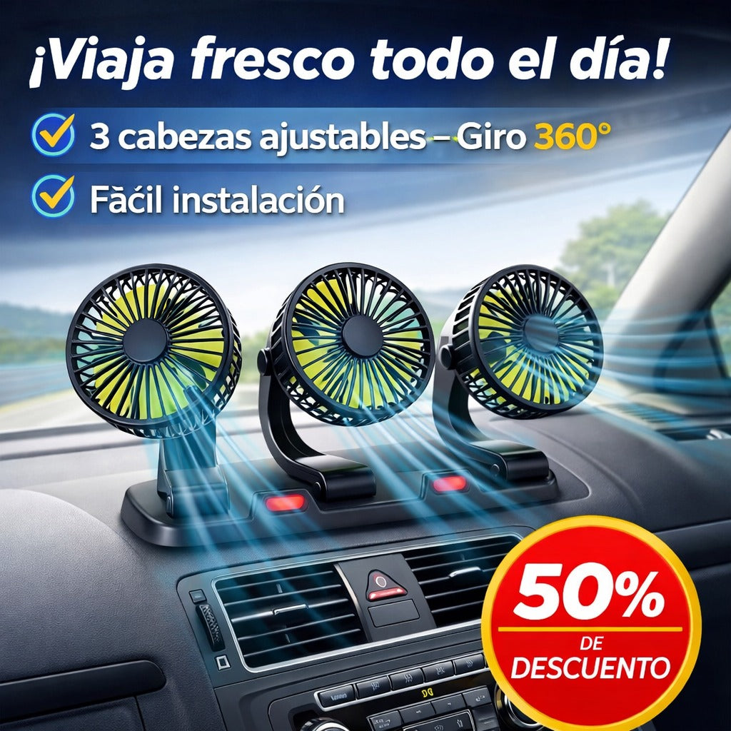 Ventilador para auto de 3 cabezales 360° - Versión 2026